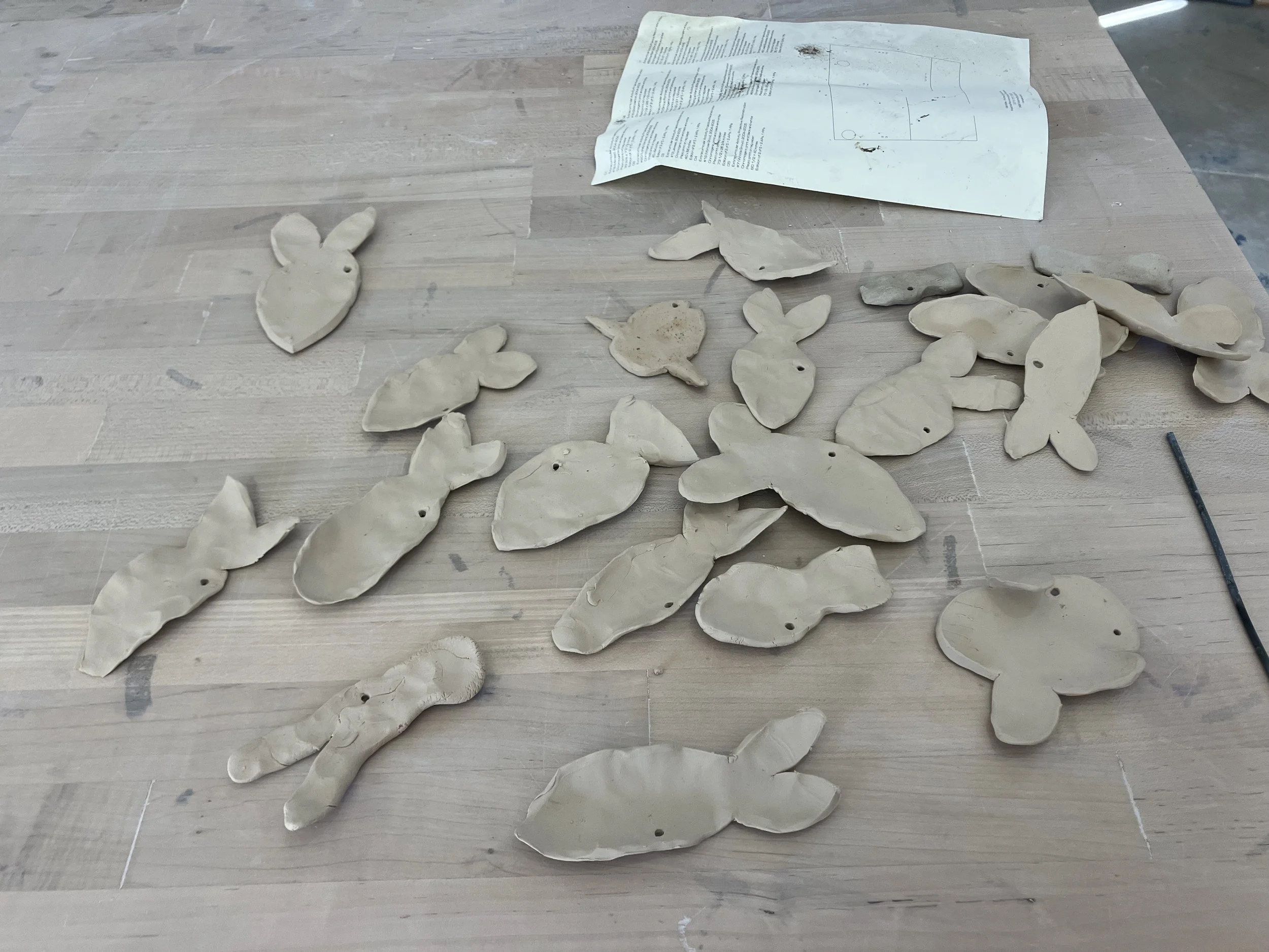 I made more fish yesterday and glazed some more today. I should be thinking of how to track fish but maybe later. I’ve been painting underglaze on reclaim bowls I find and decided to be more painterly with some of the underglaze on the fish. My earlier attempts to use underglaze on my fish haven’t been as loose as this one. I like the direction this is going.