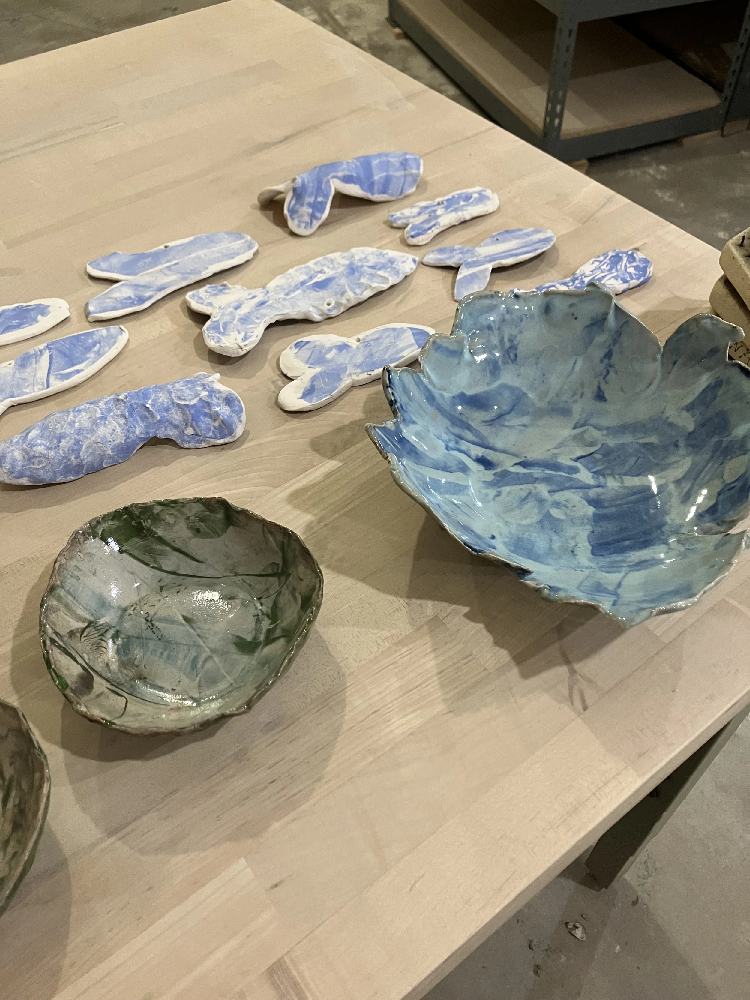 Second, what I made today. Stole a vase from the reclaim, made a shitty little bowl and a few fish, along with some sculptural work.