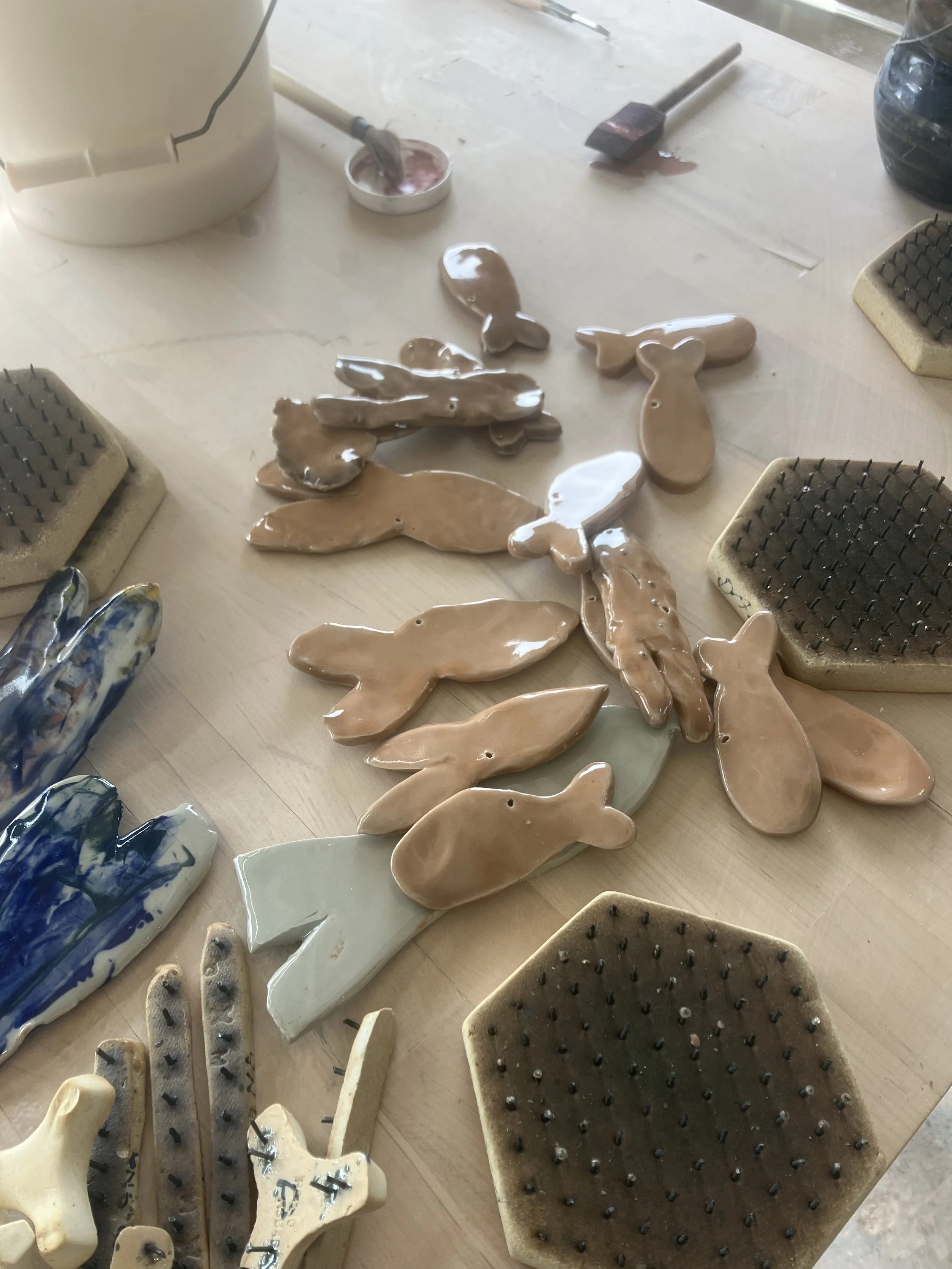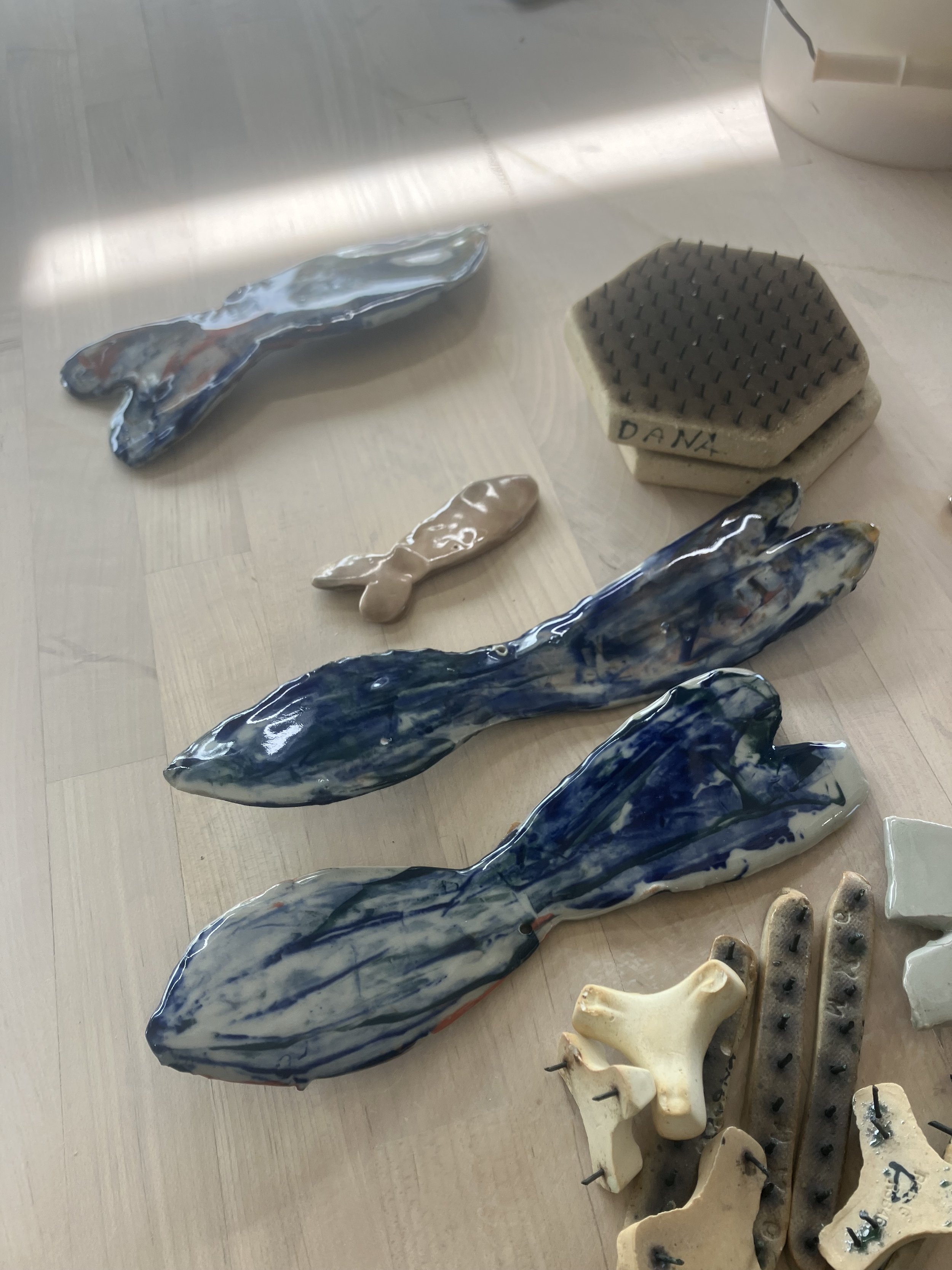 I spent my time at the studio last week trying to make a lidded compost pot. It’s organic and messy for organic and messy things. Some fish were made—attempts at clownfish but the orange didn’t pop like I would like. The parrotfish turned out beautifully.