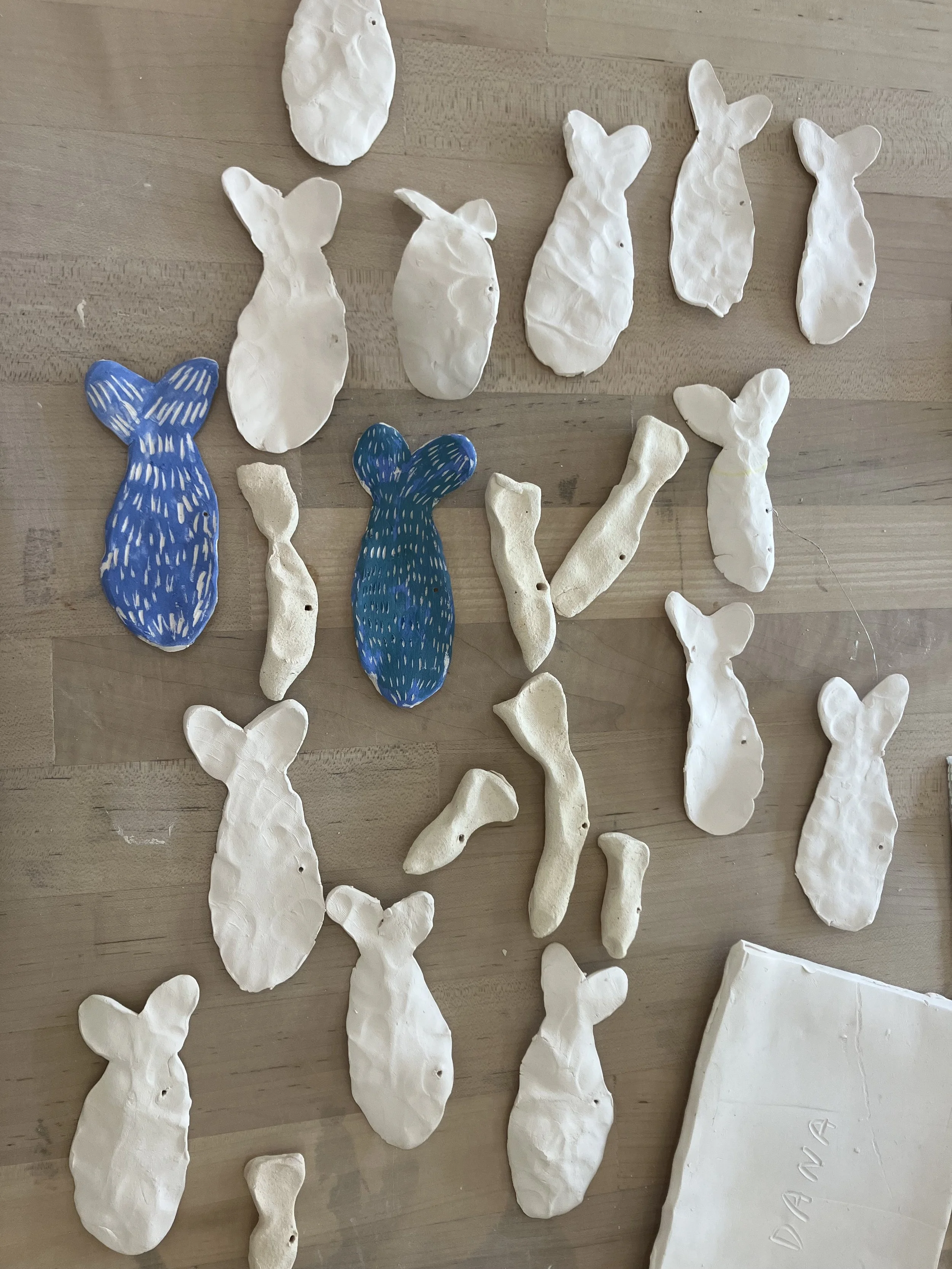 Not everything is fish. Left is transparent glaze over underglaze, right is celadon.